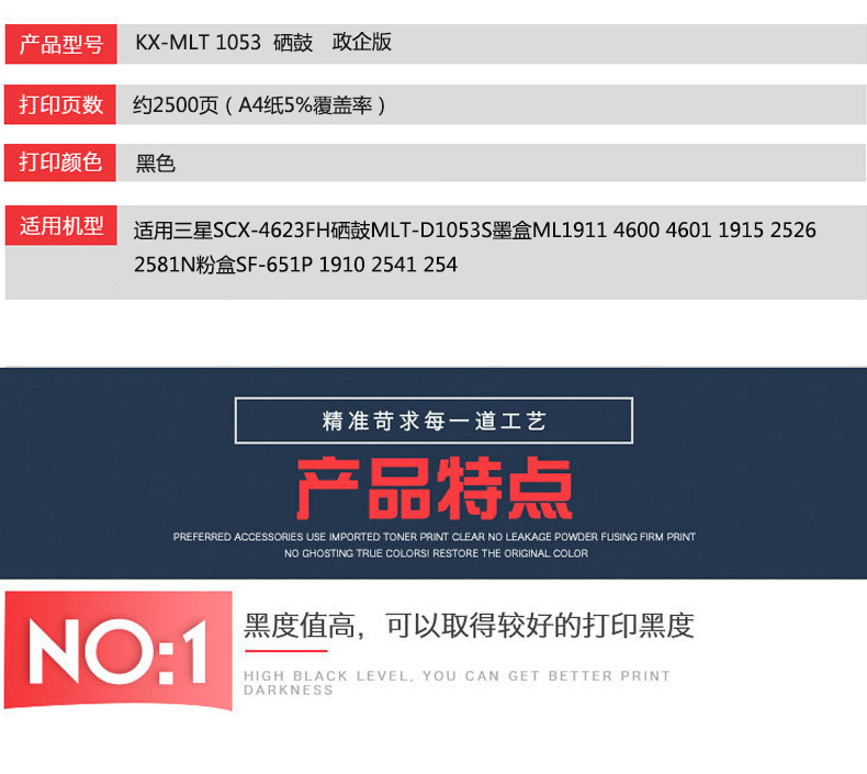 凱欣KX-MLT1053 適用于三星 ML1911/2525/2526/4600/4601/4623/DELL 全國(guó)統(tǒng)一價(jià):295元